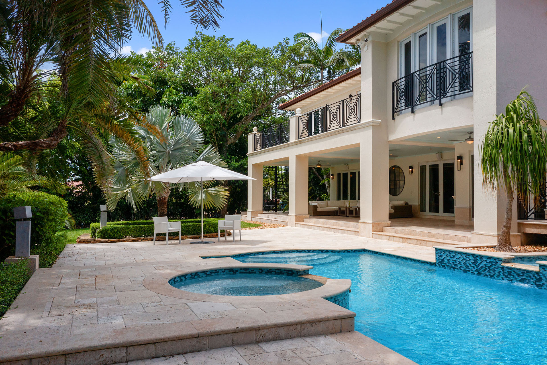Stunning pool and jacuzzi, spacious terraces, “Juliette” balcony, custom landscaping, outdoor grill.